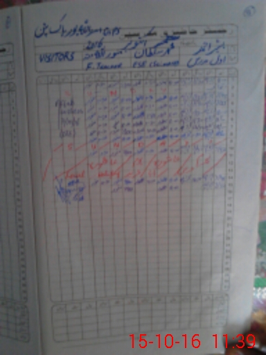 | School Visited by School Health & Nutrition Supervisor (No. of Visits) | Name1: | HASEEB UD DIN | Name2: | ||