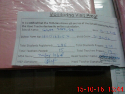 | Certified that this School was Inspected by the Undersigned MEA/DMO Today and the Information Stated Above is as Per Record. | |||||
