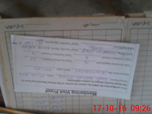 | Remarks (Use Separate Page if Required): No EDUCATION OFFICER VISITED THE SCHOOL IN THE MONTH OF SEP 2016 N S B RECORD NOT PROVIDED AT TIME OF VISIT | |||||