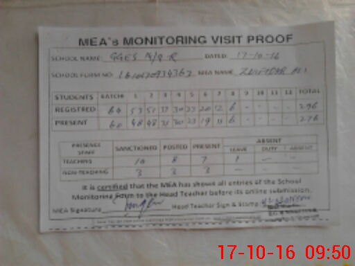 | Certified that this School was Inspected by the Undersigned MEA/DMO Today and the Information Stated Above is as Per Record. | |||||
