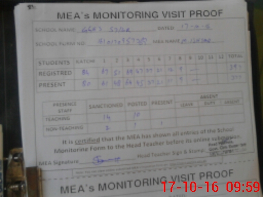 | Attendance Register | Head Teacher | MEA with School | Visit Proof |