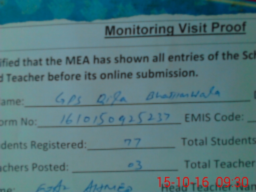| EMIS Code: 35420237 | Name of School: GPS QILA BHATTIAN WALA | |||