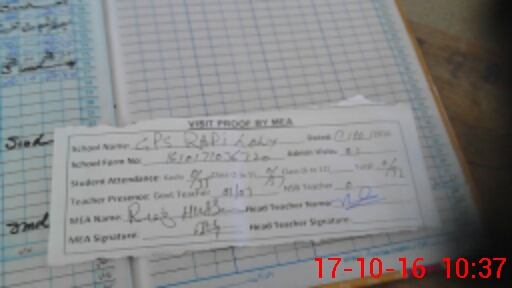 | Attendance Register | Head Teacher | MEA with School | Visit Proof |