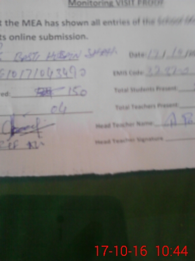 | Certified that this School was Inspected by the Undersigned MEA/DMO Today and the Information Stated Above is as Per Record. | |||||