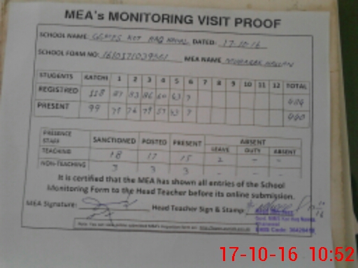 | Certified that this School was Inspected by the Undersigned MEA/DMO Today and the Information Stated Above is as Per Record. | |||||