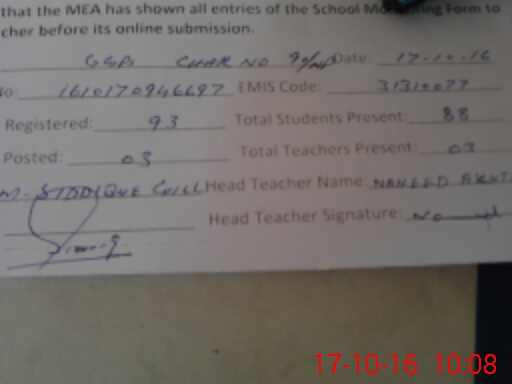 | Certified that this School was Inspected by the Undersigned MEA/DMO Today and the Information Stated Above is as Per Record. | |||||
