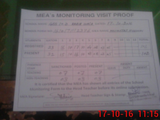 | Certified that this School was Inspected by the Undersigned MEA/DMO Today and the Information Stated Above is as Per Record. | |||||