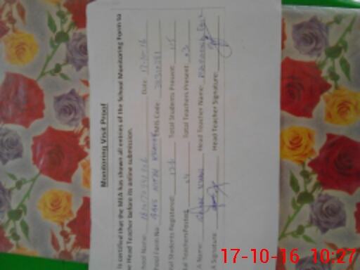 | Monitoring Date: 17-10-2016 | Start Time: 17-10-2016 09:41 AM | End Time: 17-10-2016 10:29 AM | Name of MEA: Gu**** Hu**** Kh**** | |