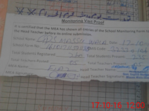 | EMIS Code: 32330106 | Name of School: GPS MASSU WALA | |||