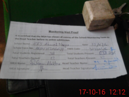| Attendance Register | Head Teacher | MEA with School | Visit Proof |