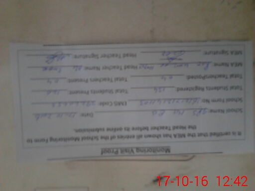 | Certified that this School was Inspected by the Undersigned MEA/DMO Today and the Information Stated Above is as Per Record. | |||||