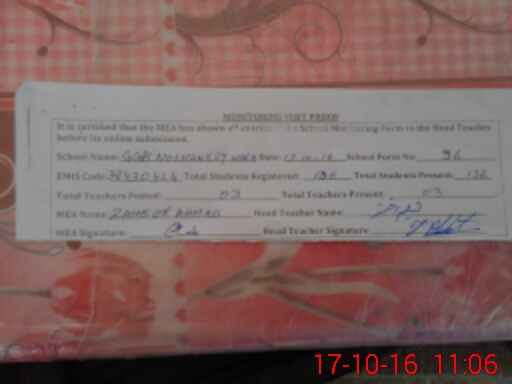 | Attendance Register | Head Teacher | MEA with School | Visit Proof |