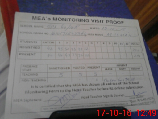 | Attendance Register | Head Teacher | MEA with School | Visit Proof |