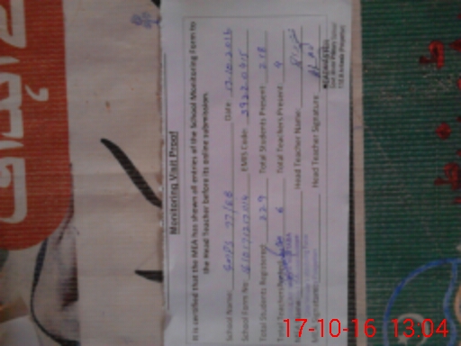 | Attendance Register | Head Teacher | MEA with School | Visit Proof |