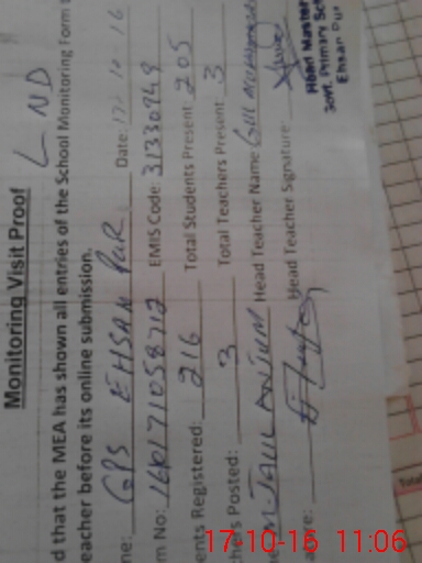 | EMIS Code: 31330949 | Name of School: GPS EHSAN PUR | |||