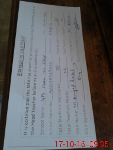 | Certified that this School was Inspected by the Undersigned MEA/DMO Today and the Information Stated Above is as Per Record. | |||||