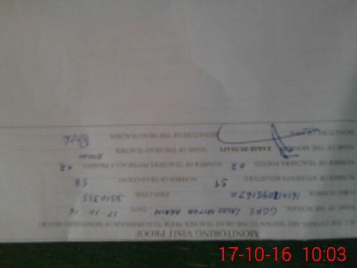 | Monitoring Date: 17-10-2016 | Start Time: 17-10-2016 09:44 AM | End Time: 17-10-2016 10:06 AM | Name of MEA: Za**** Hu**** | |