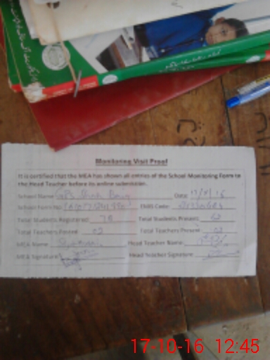 | EMIS Code: 31330484 | Name of School: GPS SHAH BAIG | |||