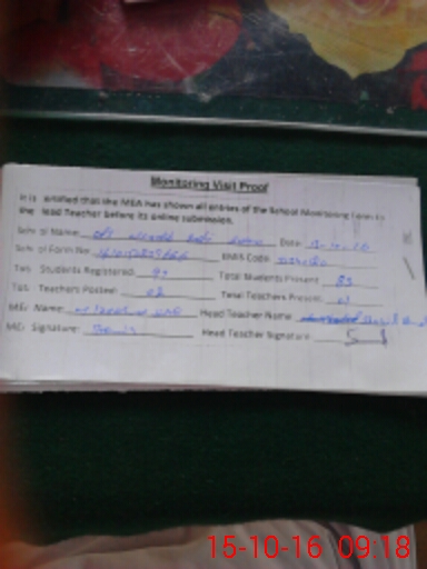 | Certified that this School was Inspected by the Undersigned MEA/DMO Today and the Information Stated Above is as Per Record. | |||||
