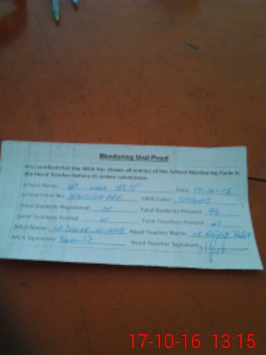 | Attendance Register | Head Teacher | MEA with School | Visit Proof |