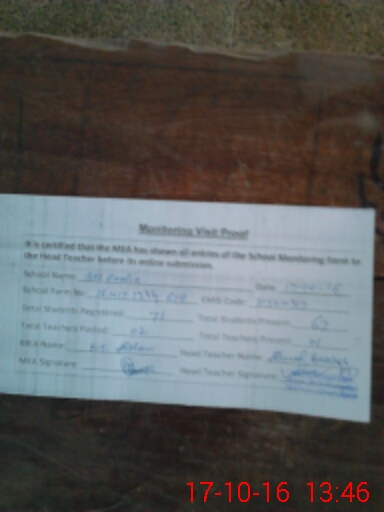 | Attendance Register | Head Teacher | MEA with School | Visit Proof |