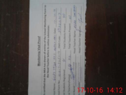 | Attendance Register | Head Teacher | MEA with School | Visit Proof |