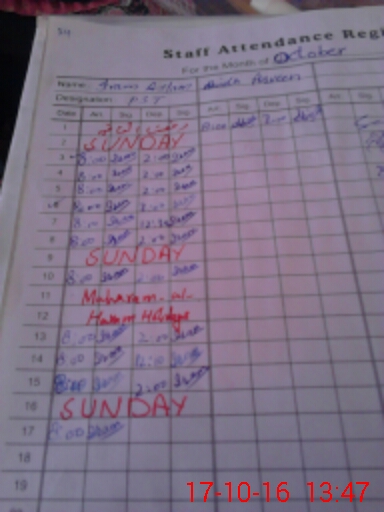| Name: IR**** AS**** Designation: (School Headmaster's/Headmistress's) PST Phone/Cell Number: 03**** |