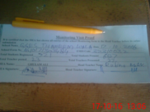 | Attendance Register | Head Teacher | MEA with School | Visit Proof |