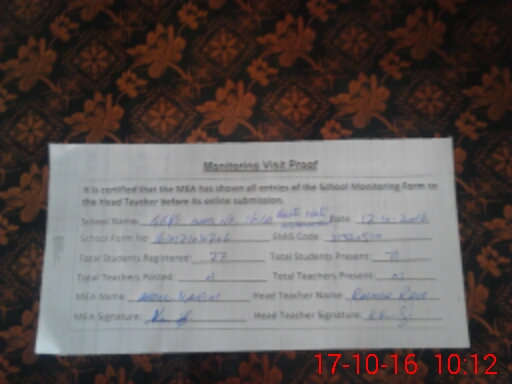 | Attendance Register | Head Teacher | MEA with School | Visit Proof |