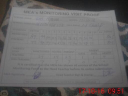| Attendance Register | Head Teacher | MEA with School | Visit Proof |