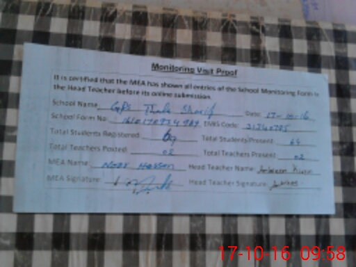 | EMIS Code: 31340795 | Name of School: GPS THALLA SHARIF | |||