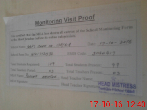 | Attendance Register | Head Teacher | MEA with School | Visit Proof |