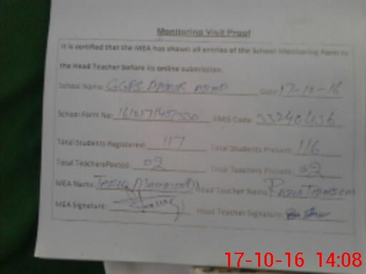 | Certified that this School was Inspected by the Undersigned MEA/DMO Today and the Information Stated Above is as Per Record. | |||||