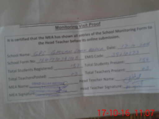 | Certified that this School was Inspected by the Undersigned MEA/DMO Today and the Information Stated Above is as Per Record. | |||||