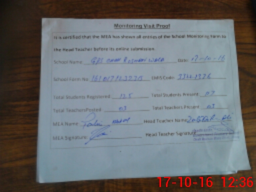 | Certified that this School was Inspected by the Undersigned MEA/DMO Today and the Information Stated Above is as Per Record. | |||||