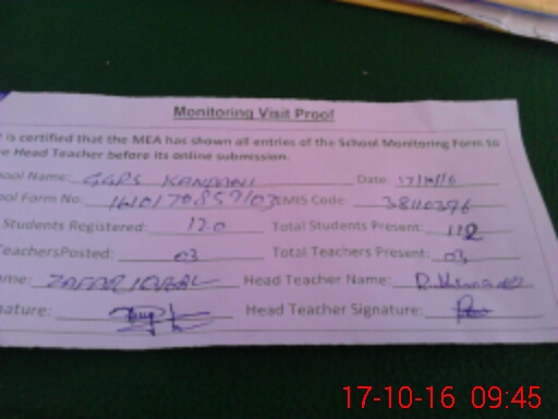 | Certified that this School was Inspected by the Undersigned MEA/DMO Today and the Information Stated Above is as Per Record. | |||||
