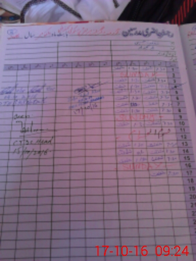 | Monitoring Date: 17-10-2016 | Start Time: 17-10-2016 08:59 AM | End Time: 17-10-2016 09:45 AM | Name of MEA: Za**** Iq**** Kh**** | |