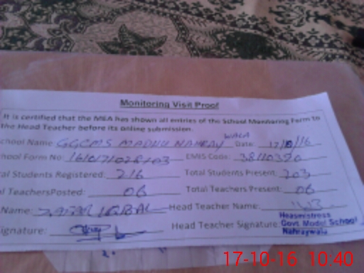 | Certified that this School was Inspected by the Undersigned MEA/DMO Today and the Information Stated Above is as Per Record. | |||||