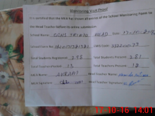 | 1 | 30/09/2016 | SNR HEAD MASTER GHS KOT KHIRA JHANG | ||