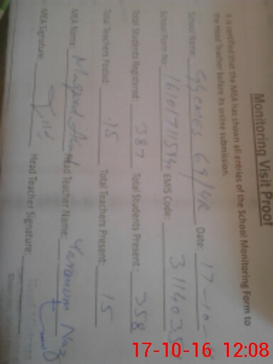 | Name: TA**** NA**** Designation: (School Headmaster's/Headmistress's) SST Phone/Cell Number: 03**** |