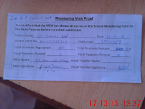 | Attendance Register | Head Teacher | MEA with School | Visit Proof |