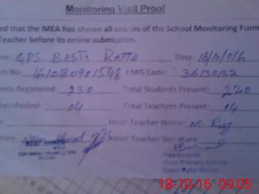 | EMIS Code: 36130132 | Name of School: GPS BASTI RATTA | |||