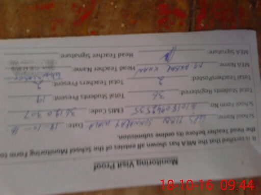 | Attendance Register | Head Teacher | MEA with School | Visit Proof |