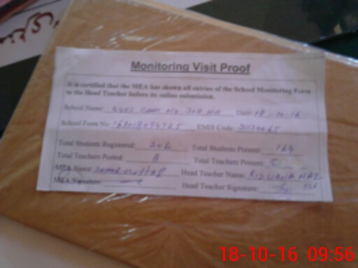| Remarks (Use Separate Page if Required): No visit of Education department in the month of Step 2016 FREE TEXT BOOK RECORD NOT PROVIDED | |||||