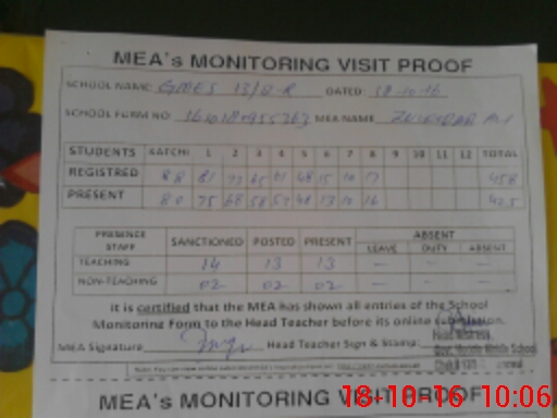 | Certified that this School was Inspected by the Undersigned MEA/DMO Today and the Information Stated Above is as Per Record. | |||||
