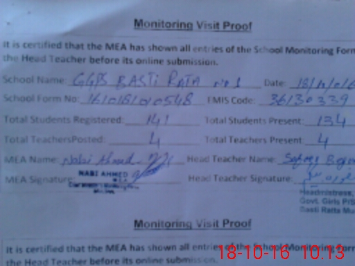 | Certified that this School was Inspected by the Undersigned MEA/DMO Today and the Information Stated Above is as Per Record. | |||||