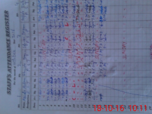 | CNIC | Full Name | Designation | R/C | Absence During Last Calender Month |