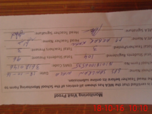 | Certified that this School was Inspected by the Undersigned MEA/DMO Today and the Information Stated Above is as Per Record. | |||||
