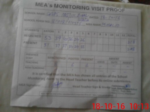 | Certified that this School was Inspected by the Undersigned MEA/DMO Today and the Information Stated Above is as Per Record. | |||||