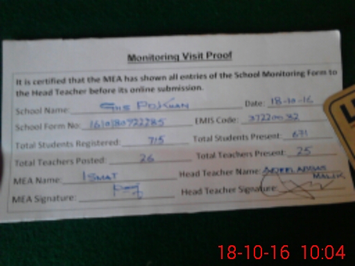 | Certified that this School was Inspected by the Undersigned MEA/DMO Today and the Information Stated Above is as Per Record. | |||||